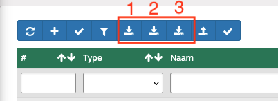 Op andere schermen kunnen ook andere gegevens geëxporteerd worden. Alle downloads zijn via bovenstaand symbool in de blauwe balk te vinden.