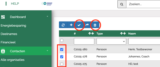3. Als je meerdere Personen of Organisaties wilt verwijderen: