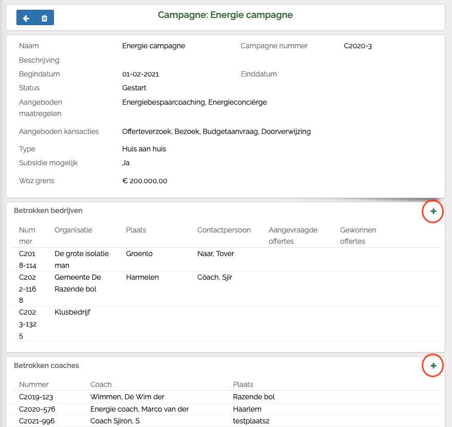 Voeg bij de campagne die je hebt aangemaakt de betrokken bedrijven en betrokken coaches toe.