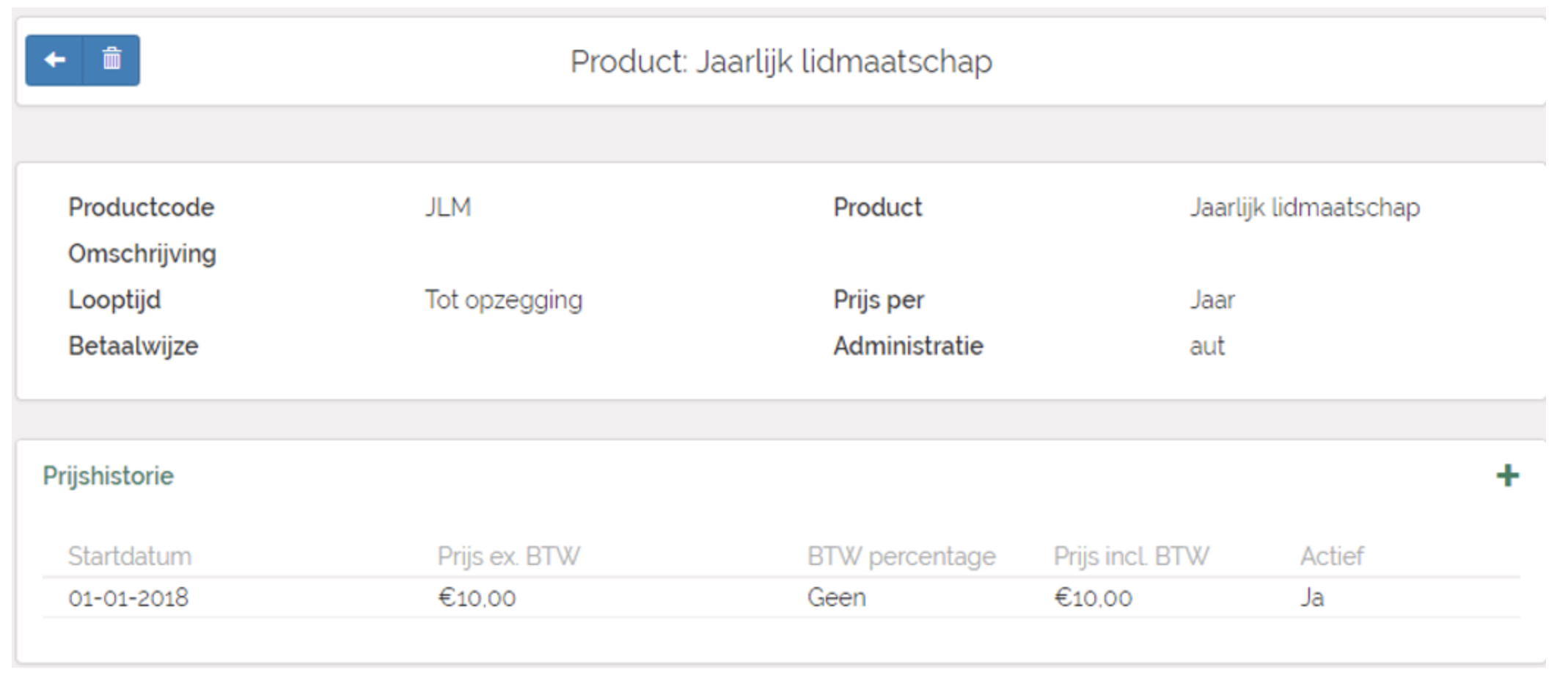 Je maakt een nieuw product aan. JLM Met de jaarlijkse facturatie. En die koppel je aan alle contacten
