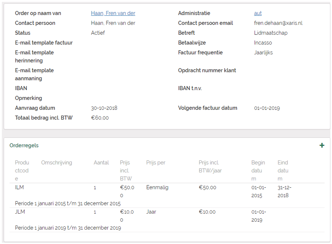 Maar we hebben wel een uitdaging. Dit lid is lid geworden op. 1 maart 2015. Maar deze datum kunnen we niet in de order zetten omdat dan de periodes verkeerd gaan lopen.