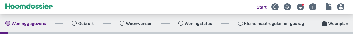 Bij het invullen van het Hoomdossier kom je vragen tegen in vijf categorieën: